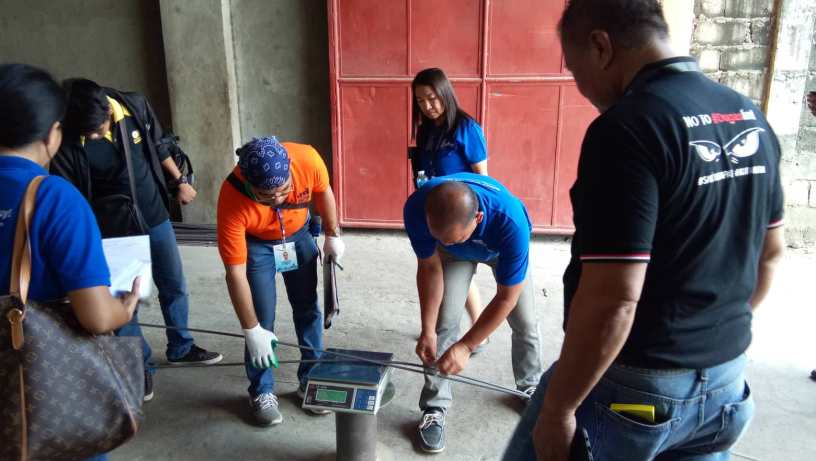 The team, headed by Asst. Regional Director Ruben Diciano and joined by Vhon Villaruel of the DTI – Bureau of Product Standards, took samples of steel bars and checked essential attributes such as markings.