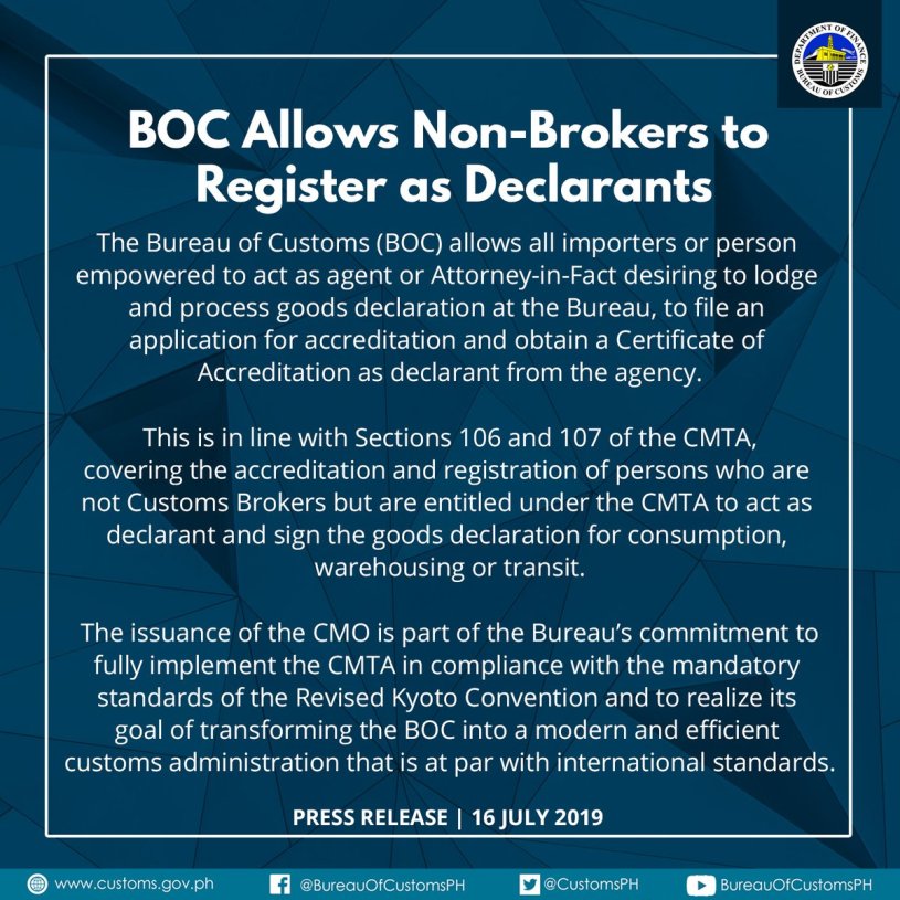 – The BOC, in partnership with airline operators, shall regularly inform the public of all developments and issuances on baggage declaration, which are all aimed toward efficient public service.