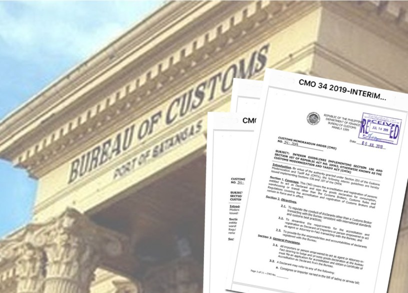 -In issuing Customs Memorandum Order (CMO) No. 34-2019, the declarant shall be responsible for the accuracy of the goods declaration and for the payment of duties, taxes and other charges of the imported goods and shall be made liable for any violation of the Customs Modernization and Tariff Act (CMTA) and other related laws.